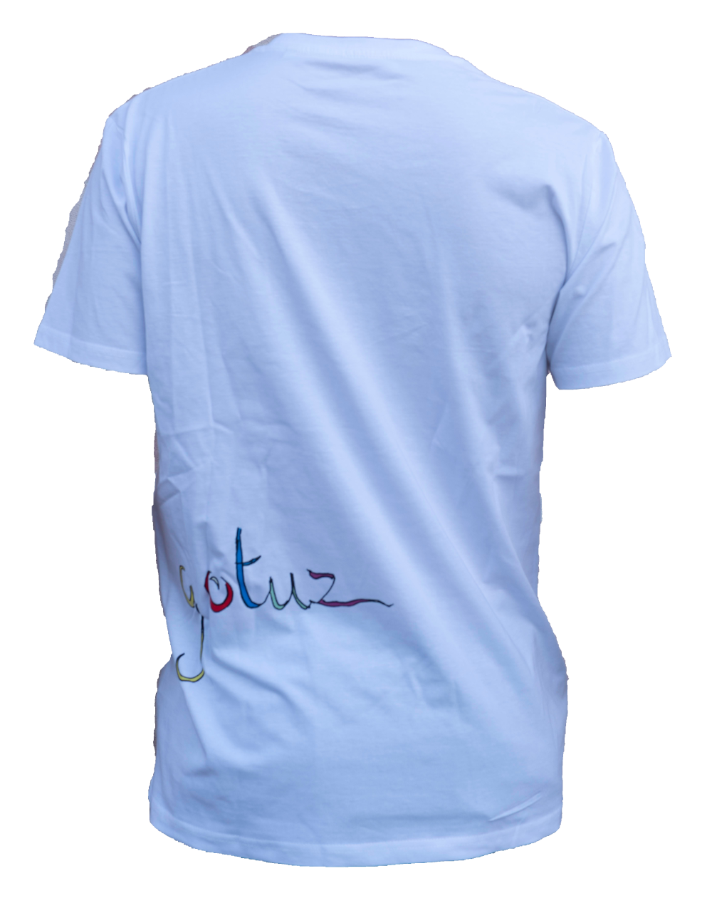 This is the premium GOTUZ White T-shirt. Made with 100% cotton, perfect for fans. Front and back design included. Limited edition!